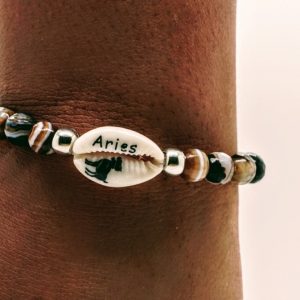 Cowrie Seashell Brown Marble Bead Aries Zodiac Sign Bracelet